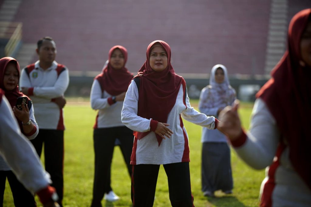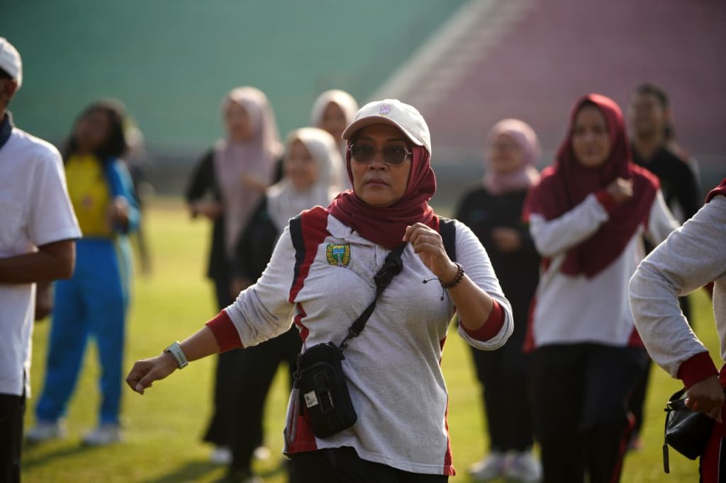 Madiun — Dalam rangka memperingati Hari Olahraga Nasional (HAORNAS) Tahun 2025, Pemerintah Kota Madiun menggelar kegiatan senam bersama secara virtual dengan Ibu Gubernur JAwa Timur yang diikuti oleh jajaran Organisasi Perangkat Daerah (OPD), Forkopimda, pelajar, serta masyarakat umum. Kegiatan berlangsung meriah di Stadion Wilis Kota Madiun, Jumat (19/09/2025) pagi.